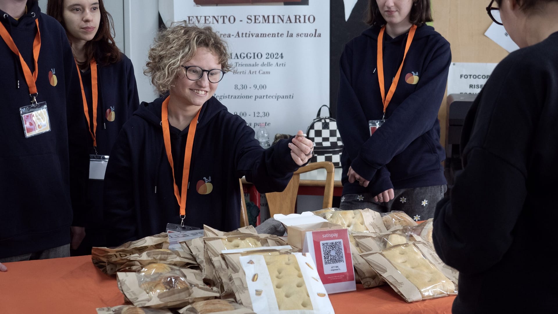 Ogni giorno, nella sede di Cascina Fossata, le nostre cuoche e i nostri cuochi preparano la merenda destinata alla vendita nelle scuole superiori di Torino, con un’offerta variegata che comprende diversi tipi di brioche, pizze rosse e farcite, focacce bianche, panini semplici, panini golosi e alla cotoletta e gli stick di pollo. La consegna di questi prodotti avviene tutte le mattine con le cargo bike di Bici-T, e una volta effettuata i dipendenti e le dipendenti allestiscono i banchetti nei corridoi. La vendita si svolge durante gli intervalli. A fine mattinata i banchetti vengono ritirati, e gli eventuali avanzi affidati ancora una volta ai biker, che li riportano a Cascina Fossata.